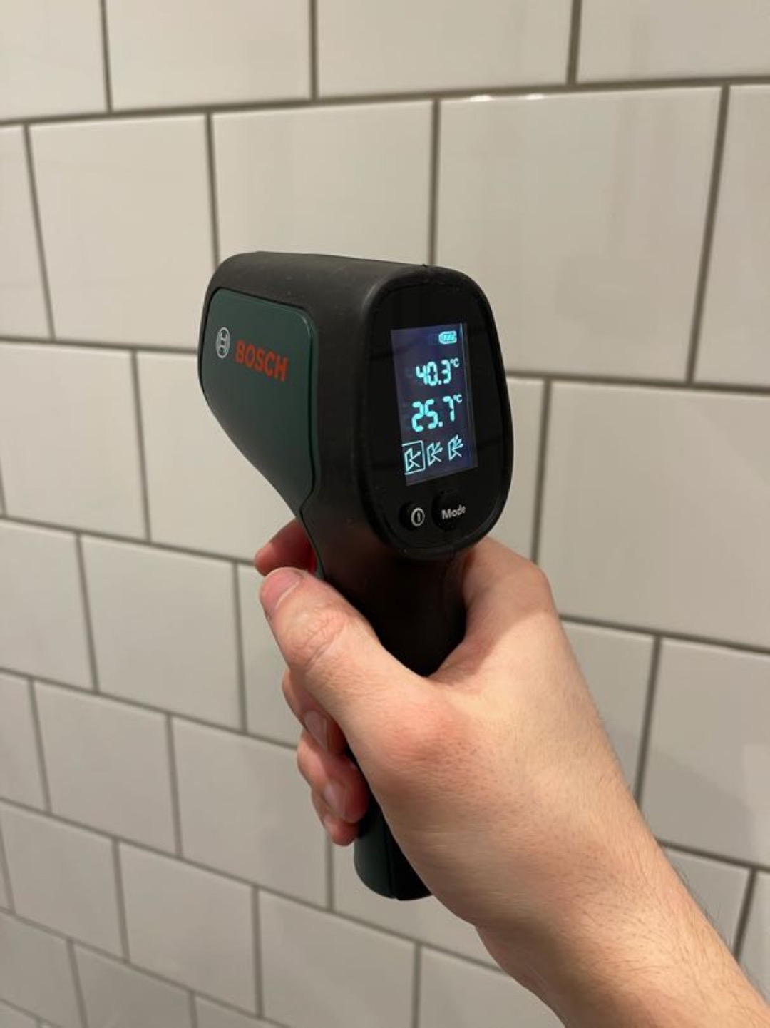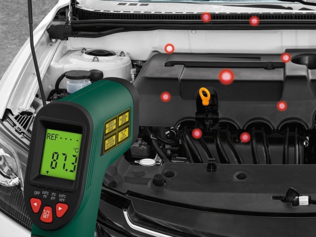 Mät yttemperatur utan kontakt med en IR-termometer. Perfekt för säker och snabb avläsning.