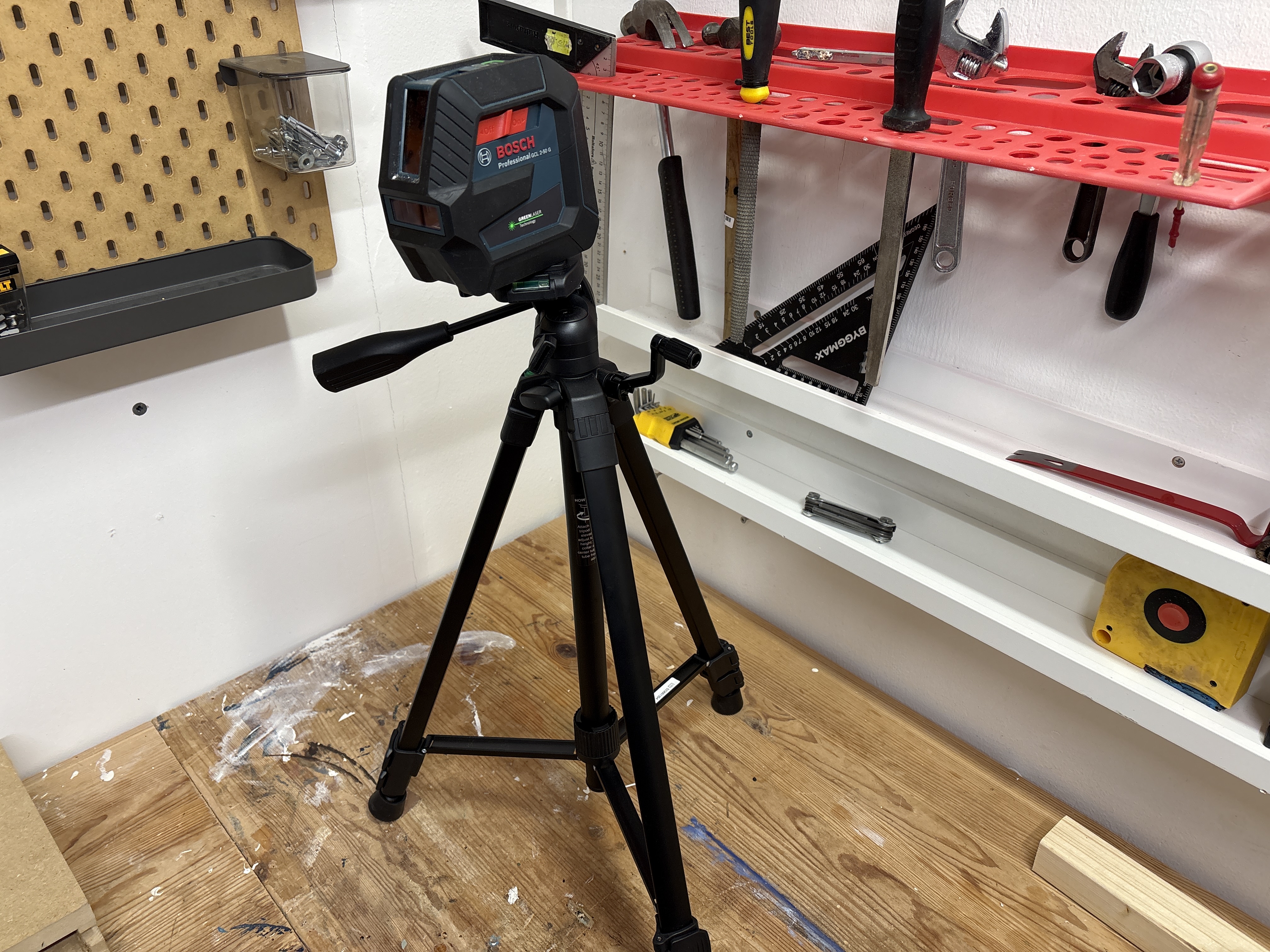 Kryslasern har många namn och kan användas till mycket. I de flesta fall kan man ersätta vattenpass och den kan både visa lodräta och vågräta linjer.