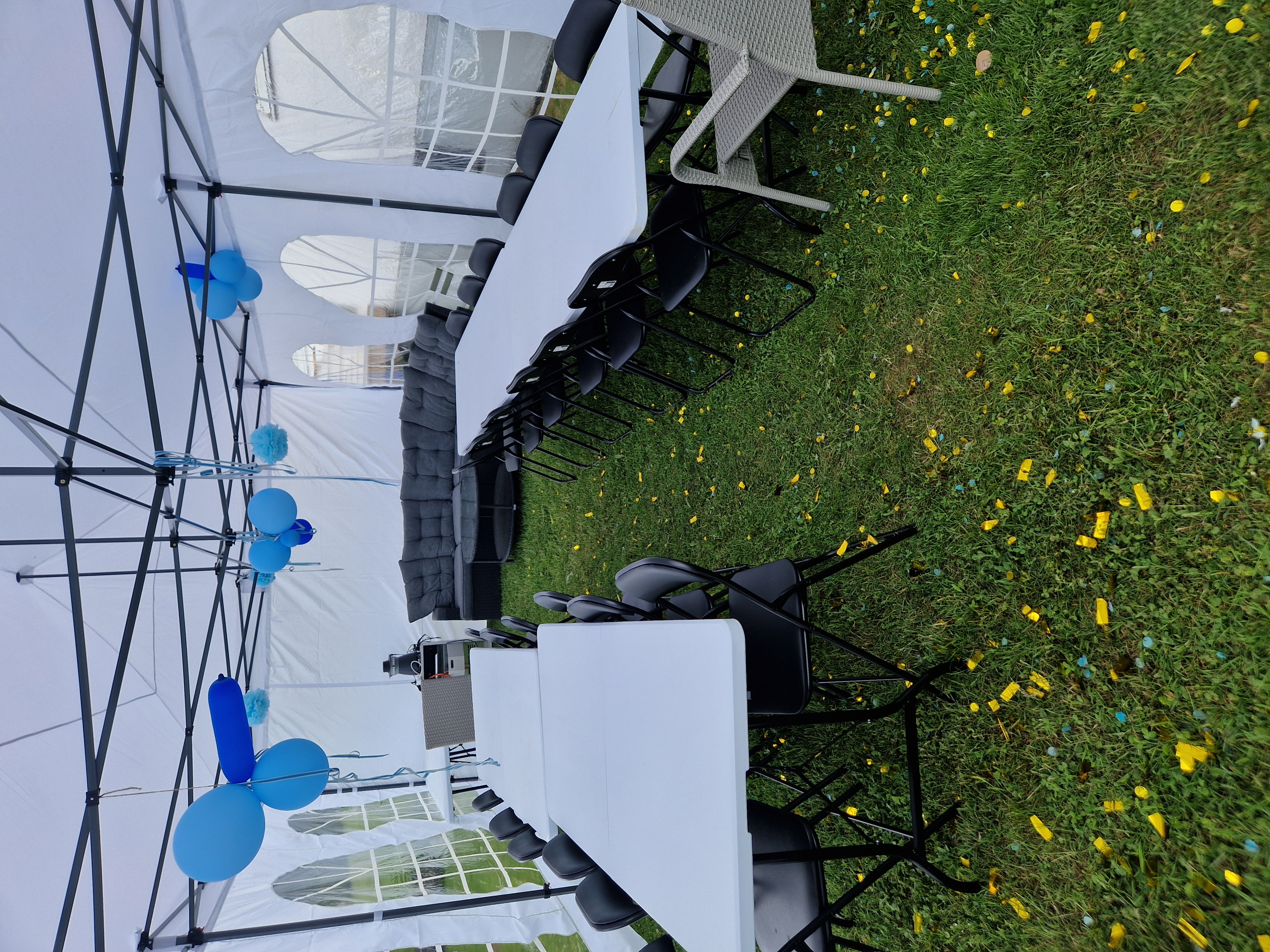 Du kan hyra paket: bord och stolar i Mjölby för ca 250 kr per dag eller 750 kr för en vecka.