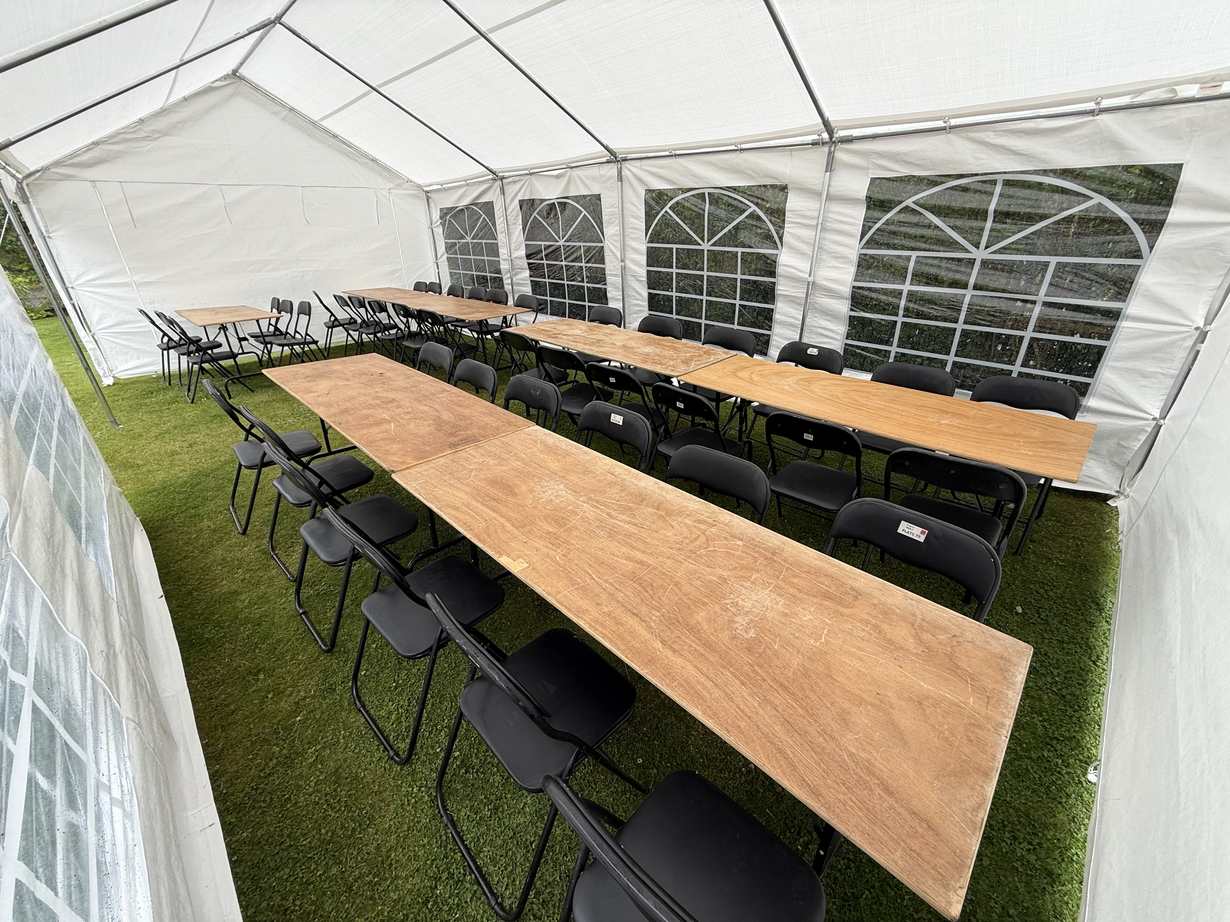 Du kan hyra paket: bord och stolar i Skåne län för ca 250 kr per dag eller 750 kr för en vecka.