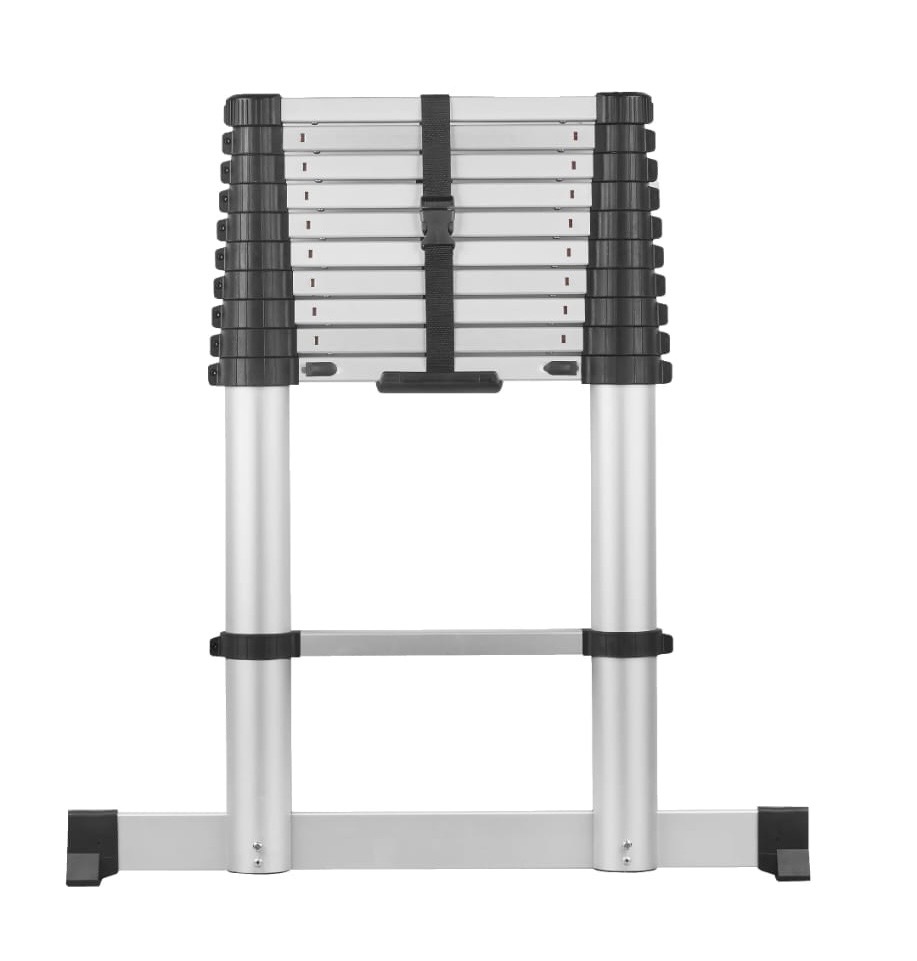 En teleskopstege är ganska liten vilket gör den enkel att transportera, men i sitt utfällda läge blir det fortfarande en lång stege med alla fördelar det innebär.