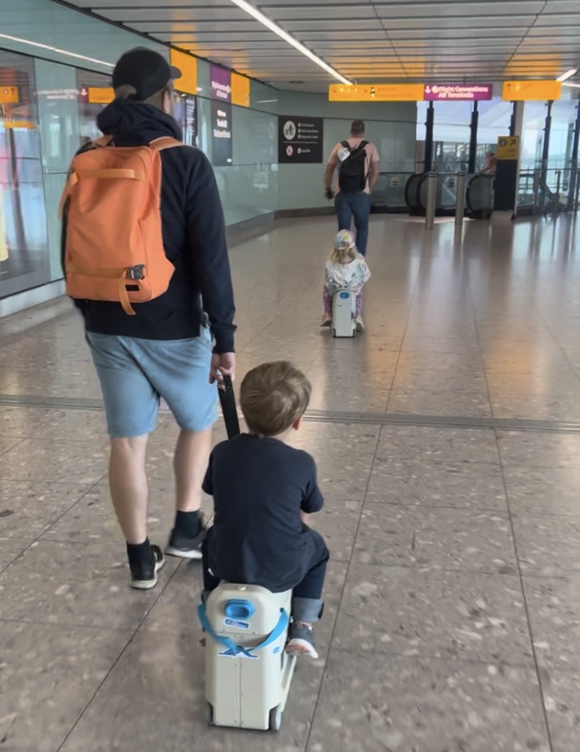 Resesäng för barn som kan användas som både väska och säng på flygplanet. Perfekt för långa resor med småbarn.
