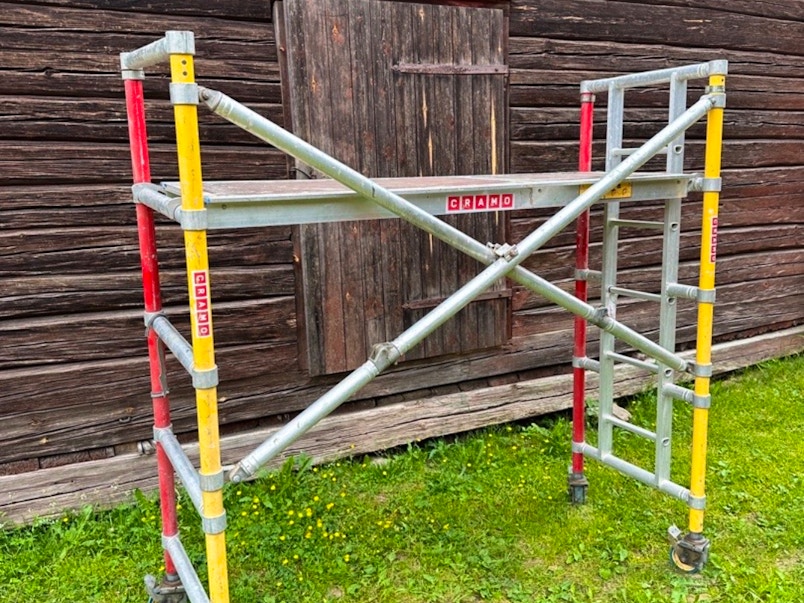 Perfekt för dig som vill ha med dig en stabil och lätt ställning ut på bygget. Monteras med ett lätt drag, sedan väljer ni plattformshöjd. Inklusive plattform med lucka och 4st låsbara hjul. Längd 2,0m · Bredd 0,75m · Max plattformshöjd 1,95 m · Vikt 48 kg Kan enkelt fällas ihop och lastas på en släpkärra.