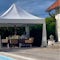 Jag har ett fantastiskt fint vitt pop up topp tält 4X4 Tältet ligger i en väska med två handtag. Måttet för din transport planering är... Längd: 200 cm Bredd 32 cm 2 personer klarar lätt av att bära tältet i sitt fodral i ett handtag var eller ensam av en stark person. Fint att använda både vid sol o regn tycker jag. skapar en extra mysfaktor för er och gästerna. Sätts upp snabbt och enkelt med en person vid varje ben. 4 personer behövs vid montering för smidigast och snabbast resultat. Tar max 10 min att klicka upp tältet när man har en person vid varje ben. Tältet är i ett enda stycke alltså inga lösa delar. Man drar och klickar upp tältet. Rejäl vit presseningsduk till tak och galvaniserade stål stolpar. Obs! Obs! Min erfarenhet är att ett topp tält behövs förankras då den vid vind lätt kan få kraft och lyfta om vinden kommer underifrån . Därför rekommenderar ( eller snarare uppmanar) jag dig och det starkaste att förankra den med exempelvis rep (Stormlinor) och eller pinnar ( jordankare se bild för hål i fötterna) OBS! Dessvärre har jag inte det till detta tält. Så det får du själv kolla om du har hemma. Ledsen om det skapar en utmaning för dig. Men annars kommer du verkligen verkligen gilla tältet. Vi har endast använt tältet vid 3 student mottagningar. Så det är i toppskick! Tältet kommer utan väggar eller gardiner. Jag har som synes på några av bilderna fäst vanliga vita ” inne gardiner” från Ikea för att skapa lite myskänsla. Tältet hyrs helst ut 3 dagar hämt dagen, festdagen och återlämnings dagen. Men naturligtvis om du hinner allt på en dag och återlämnar innan 24 samma dag funkar det jätte bra. Tältet monteras upp och ner av er och förankringen ansvarar ni också för så det på en blåsig dag får kraft att ge sig av. Återlämning sker nerpackat i fodralet i torrt skick. Tack så mycket och ha så kul på er fest!