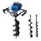 Detta är en smidig och robust jordborr med 2-takts bensinmotor. Den har såväl enkel hantering och underhåll. Det är även enkelt att byta storlek på borr och maskinen har en borrhastighet på 310 varv i minuten. Jordborren har en kraftfull motor som hjälper dig att göra hål i marken för exempelvis plintar, staketstolpar, altanfästen. Jordborren tankas med 2-taktsbensin akrylatbensin som har en oljeinblandning om 2%. Denna akrylatblandning går att köpa som 1L, (Ca 40-50 kronor) på Biltema, Jula, ÖoB samt på olika mackar, etc. Det finns även 5L flaskor vid behov. Hyrestagare står för bensin. Jordborren återlämnas välskött och rengjord. Tre styck olika borrstorlekar: 1x Borr 100 mm 1x Borr 150 mm 1x Borr 200 mm Längd borr: 800 mm Teknisk information: Längd: 54 cm Bredd: 31 cm Höjd: 112 cm Borrhastighet: 370 varv/min Borrdiameter: 100, 150, 200 mm RPM max: 9600 min Effekt: 1450W, 1,9hk Motor: 2 takt