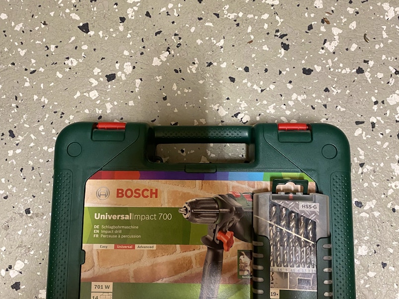 Carolina Josefin S Har hyrt Slagborr-Bosch universal inpact 707 + passande borrar i olika storlekar